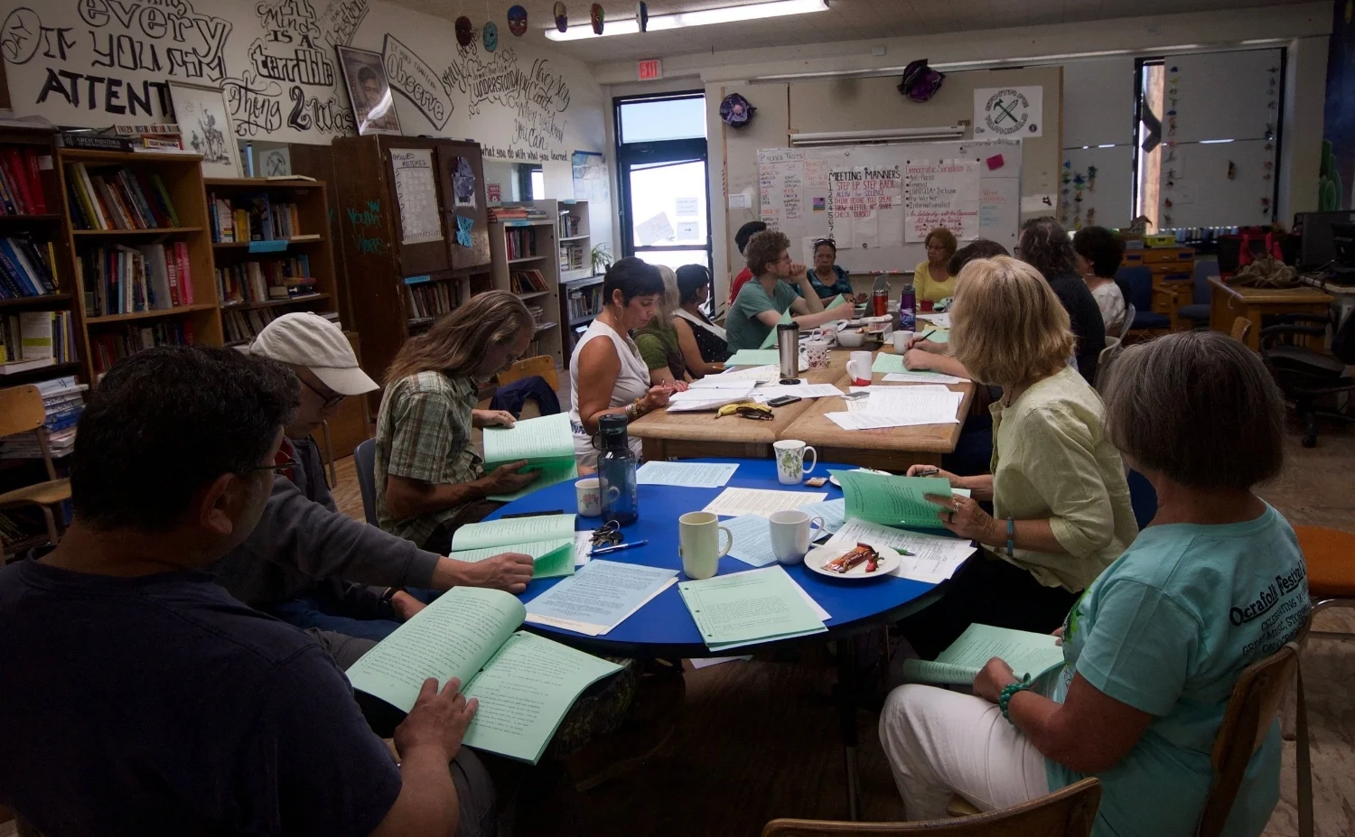 A bill workshop in Santa Fe, hosted by DSA Santa Fe and held at YouthWorks.